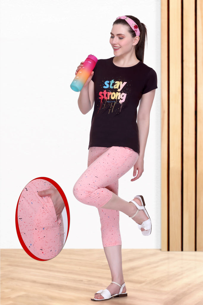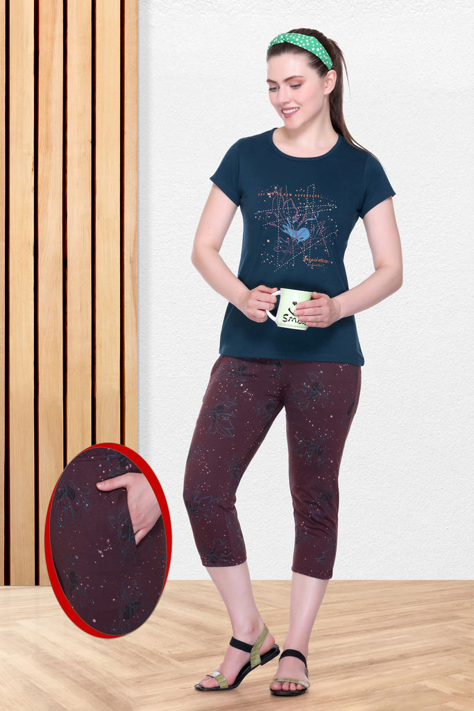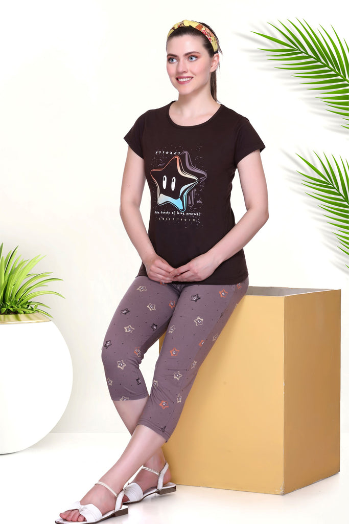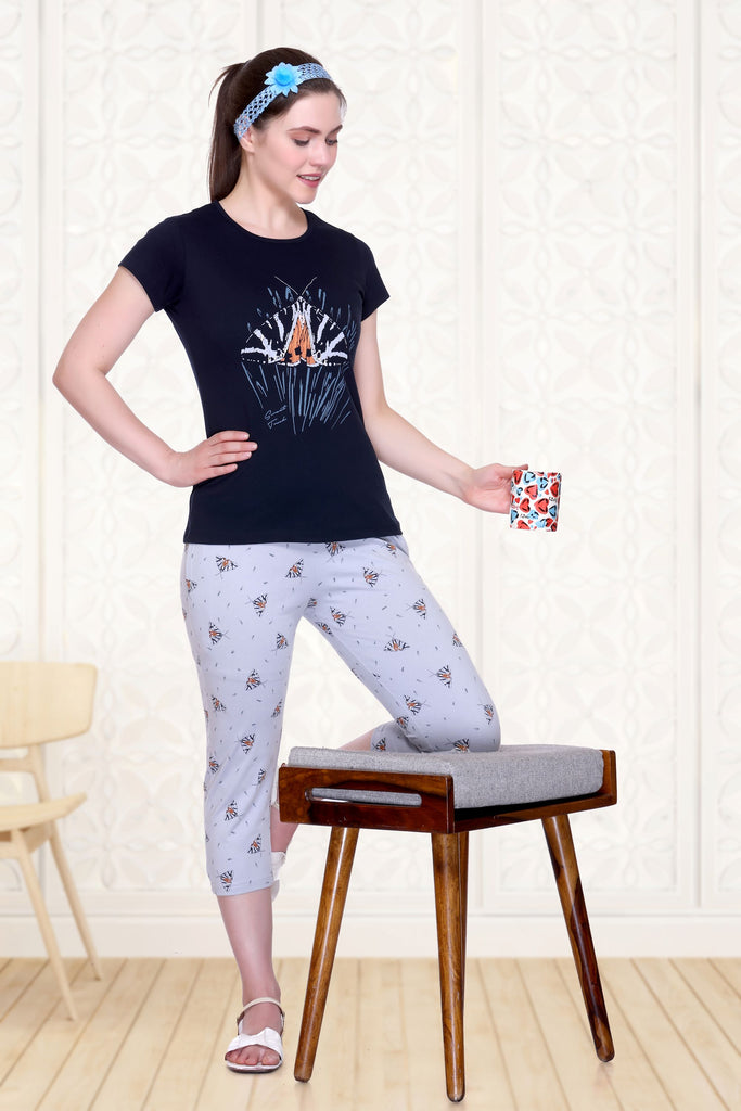 Top and Capri nightwear set: When you are stuck between too-hot-for-pajamas and too-cold-for-shorts, capri nightwear is the solution. These sleepwear sets offer the ideal mix of comfort and style, making them perfect for casual lounging or stepping outside for a quick errand. With playful prints, soft fabrics, and comfy fits, these cute night suits give you the perfect blend of comfort and versatility. You can even mix and match with different sets, adding a playful touch to your nightwear collection.