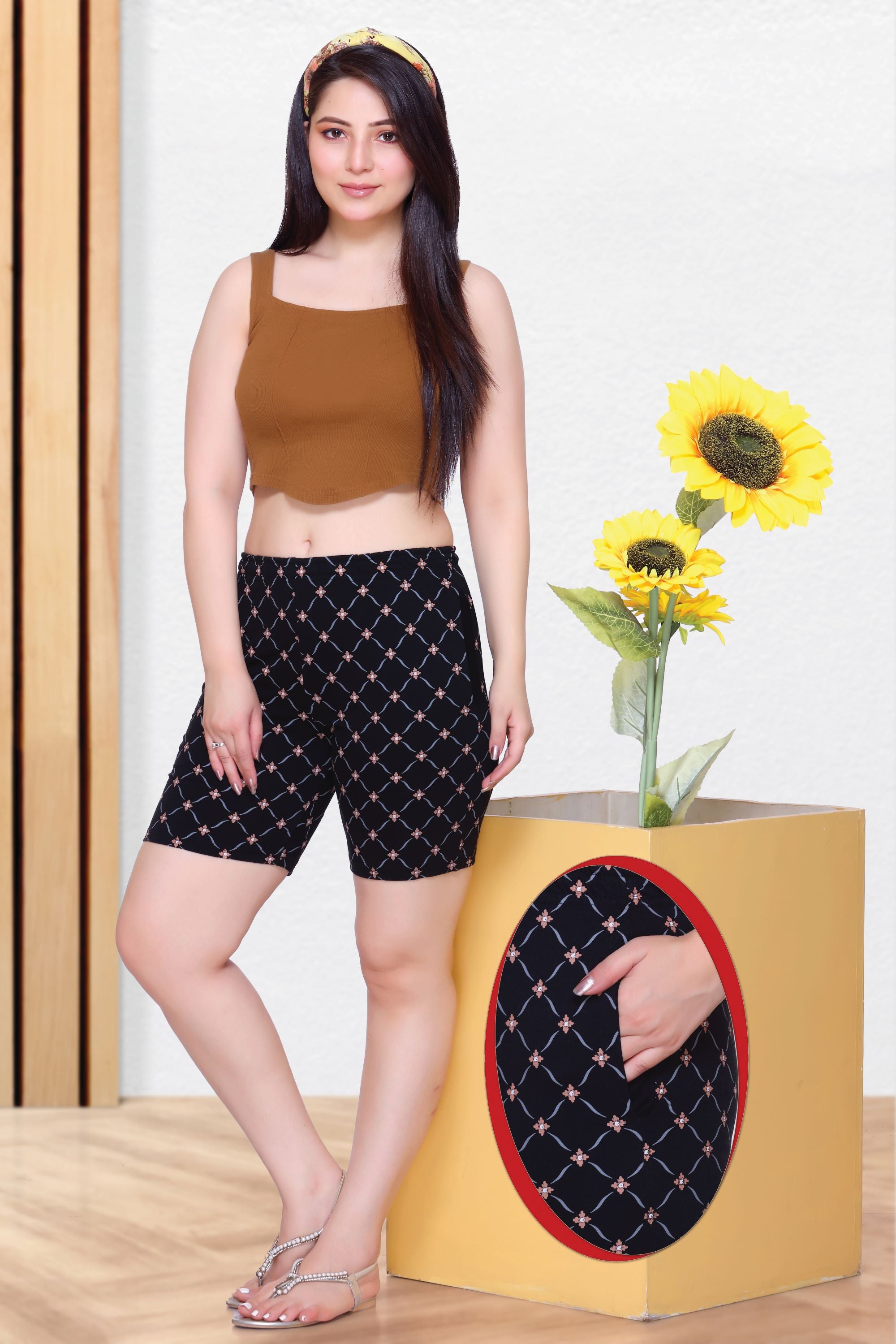 100% Cotton Printed Shorts | Elastic Waistband | Above Knee Length | Side Pockets | Comfortable Loungewear | Women’s Bottoms