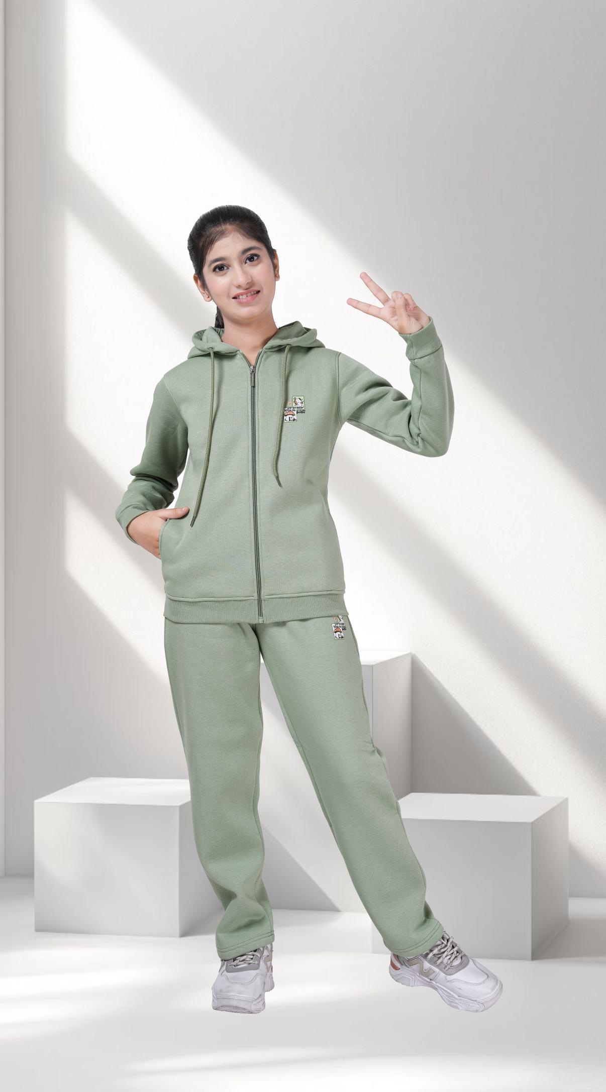 Girls co-ord set, hoodie tracksuit, zip-up jacket, casual wear, comfortable outfit, stylish loungewear