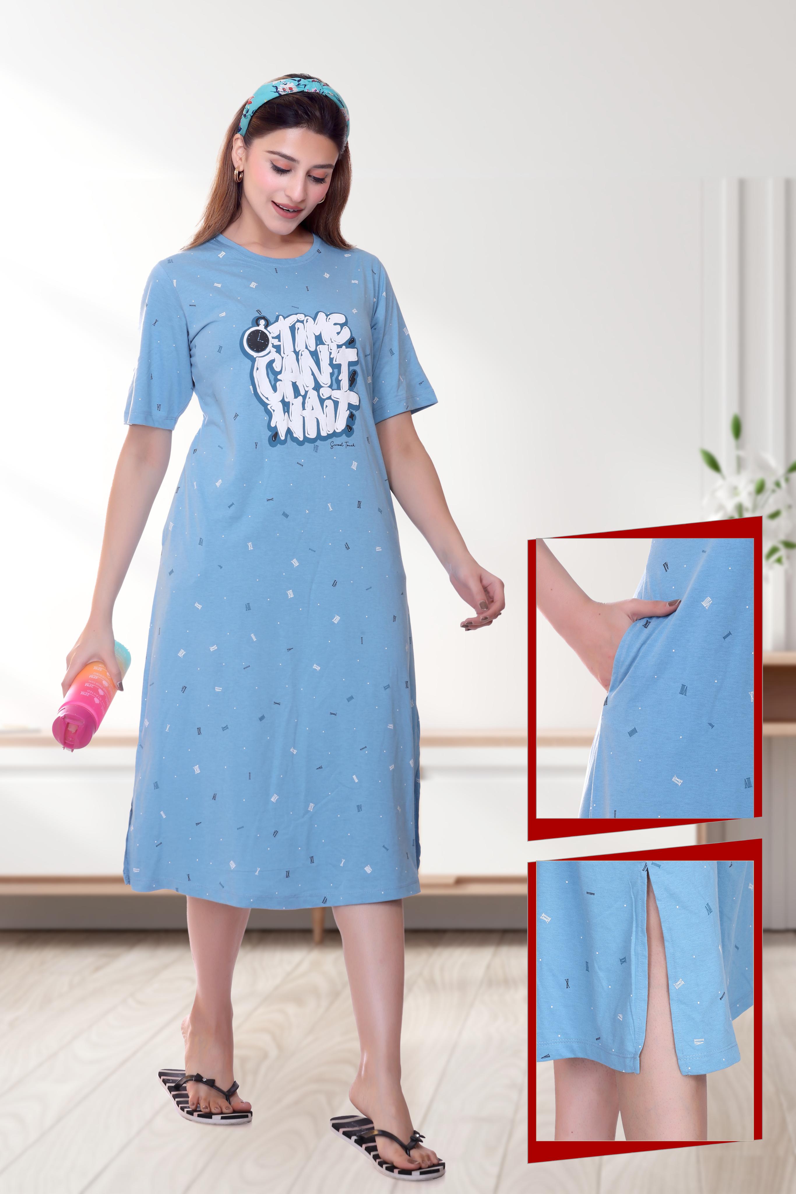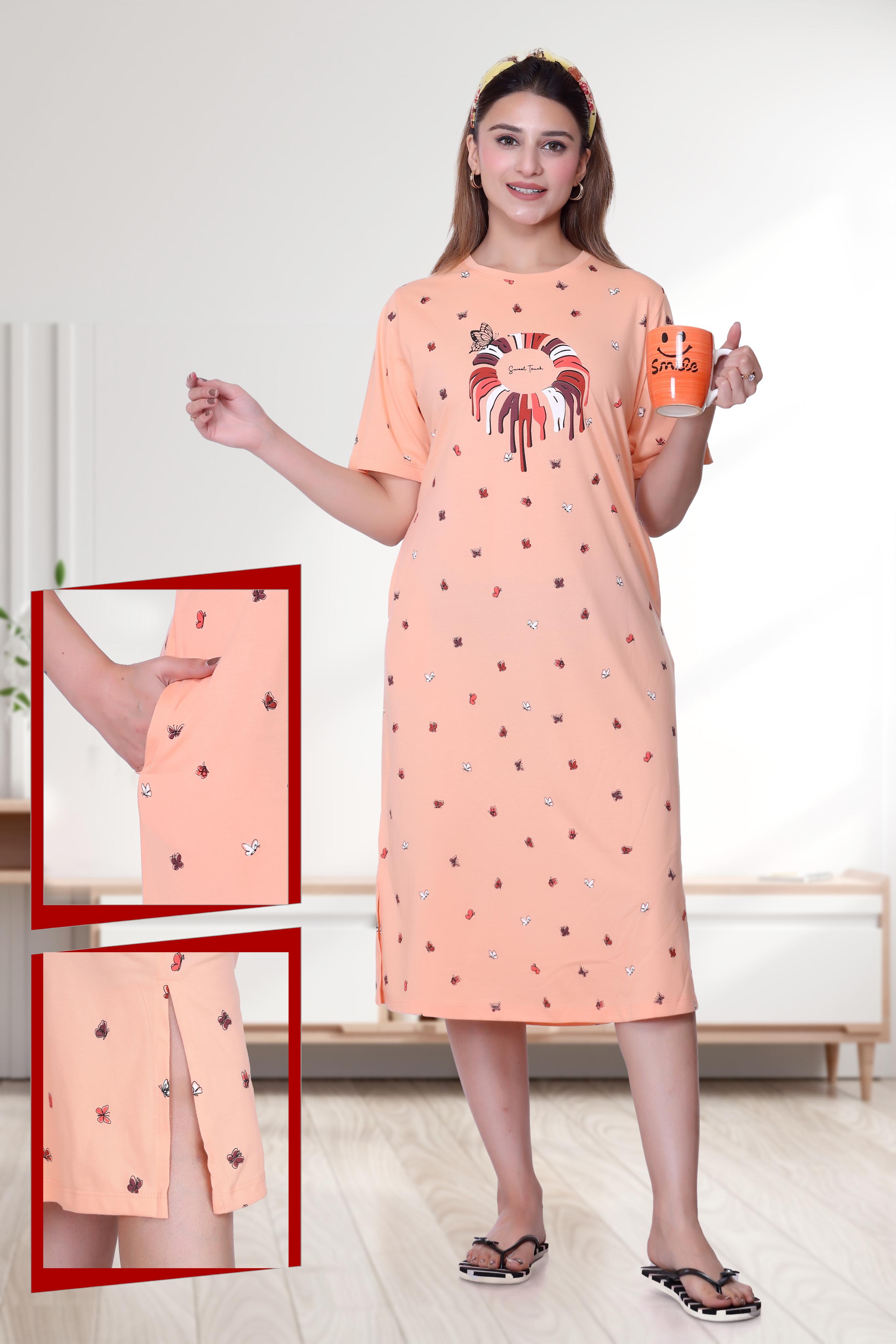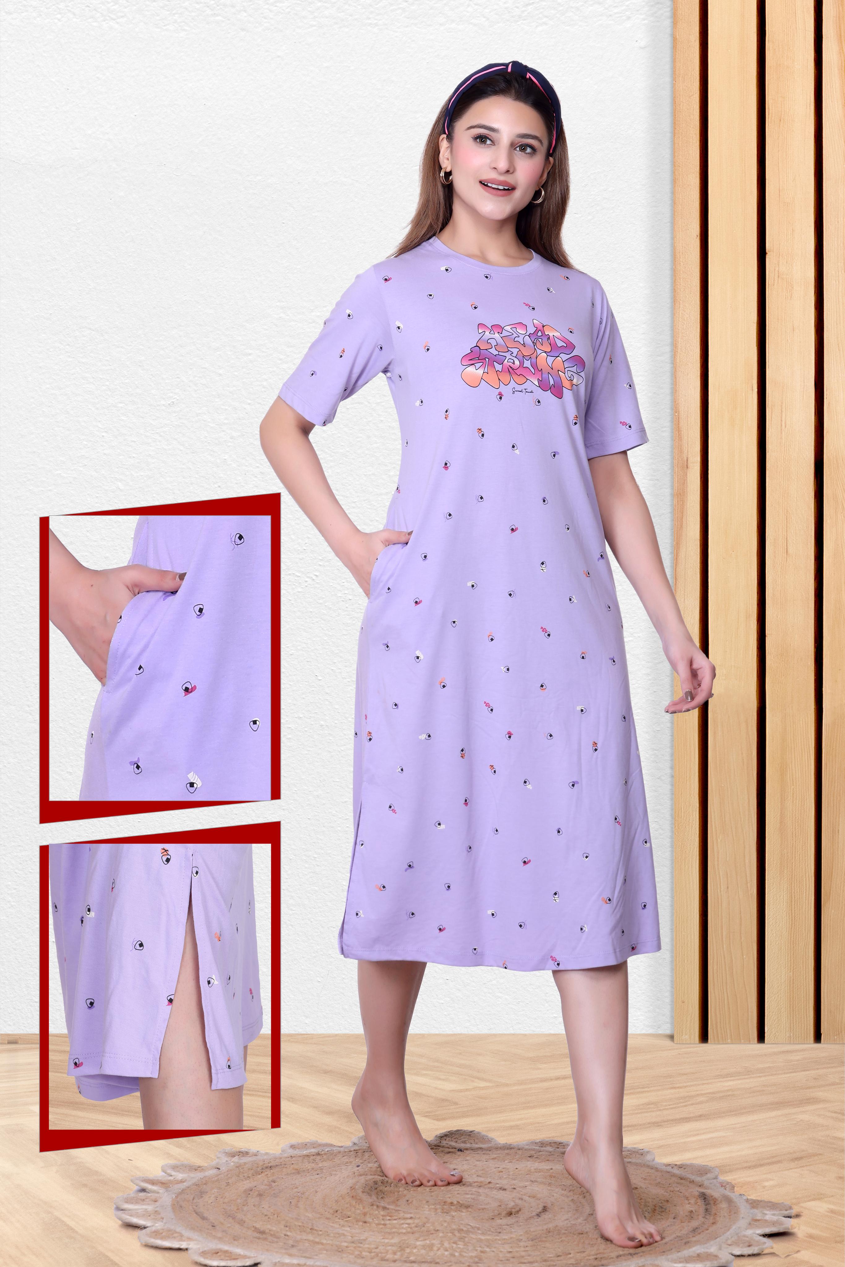 Its kurti-style length adds a touch of elegance to your everyday nightwear.