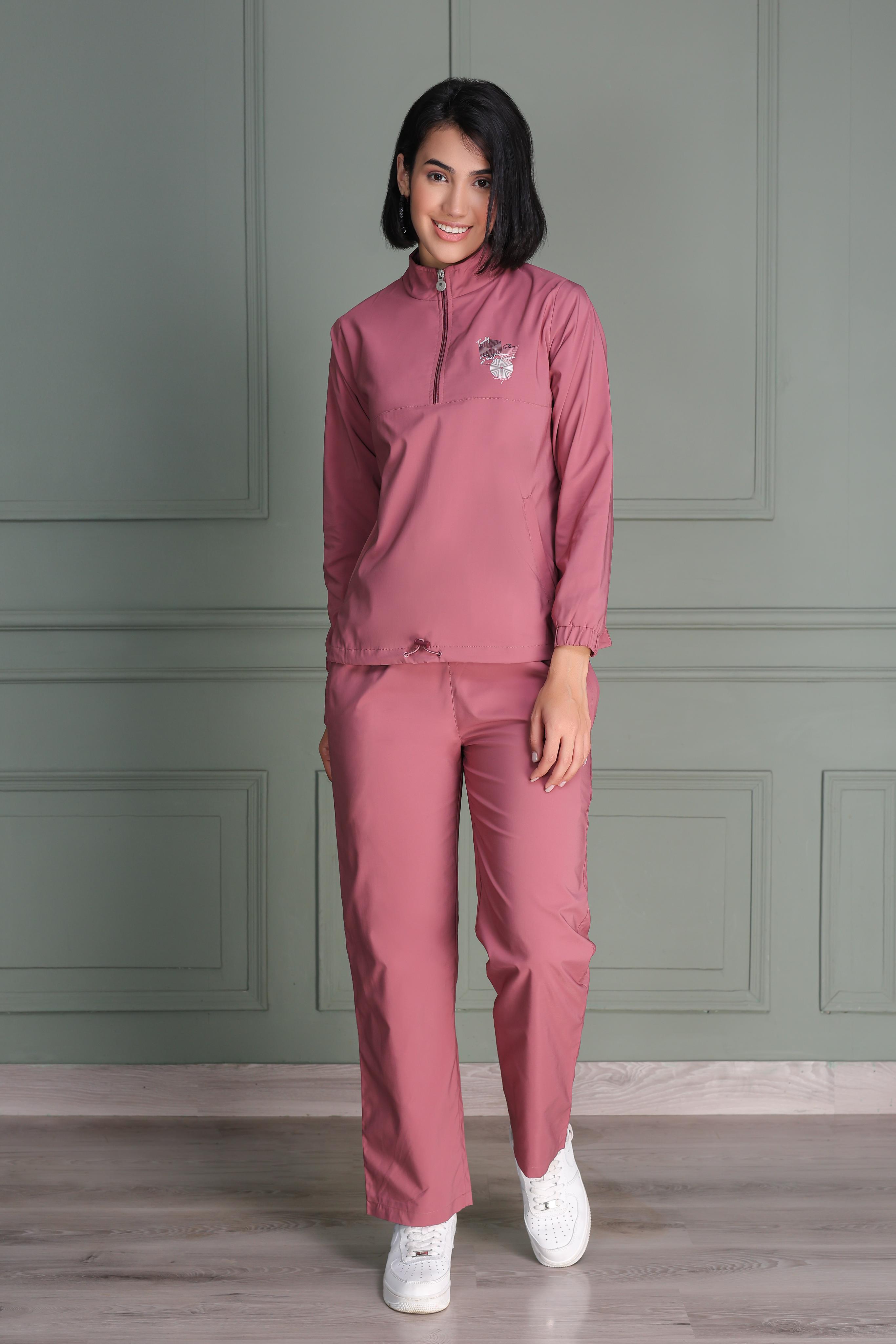 Elevate your everyday comfort with this stylish and functional two-piece tracksuit set. Crafted from lightweight, breathable fabric, this set is perfect for casual outings, light workouts, or relaxed days at home. The top features a trendy half-zip neckline for easy wear and a touch of modern style, along with a subtle floral embroidery detail that adds a feminine touch. The relaxed fit provides maximum freedom of movement, while the elasticated cuffs and adjustable drawstring waist ensure a secure, customizable fit. The matching straight-leg pants offer both comfort and versatility, designed with side pockets for added functionality. Whether you're running errands or enjoying a laid-back day, this coordinated set keeps you looking effortlessly put-together. Pair it with your favorite sneakers for a complete athleisure look. This set blends style, comfort, and practicality — a must-have addition to your modern wardrobe.