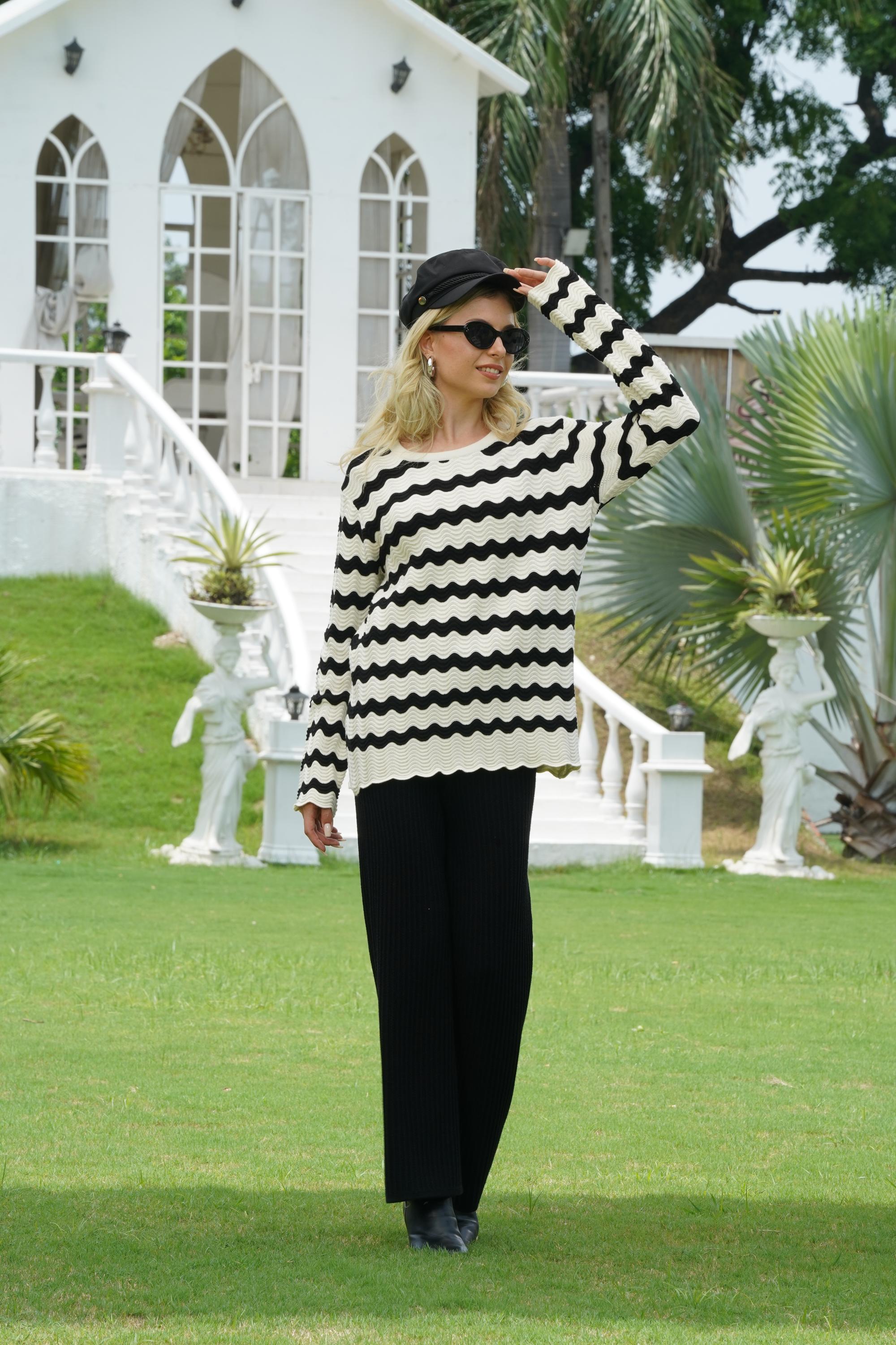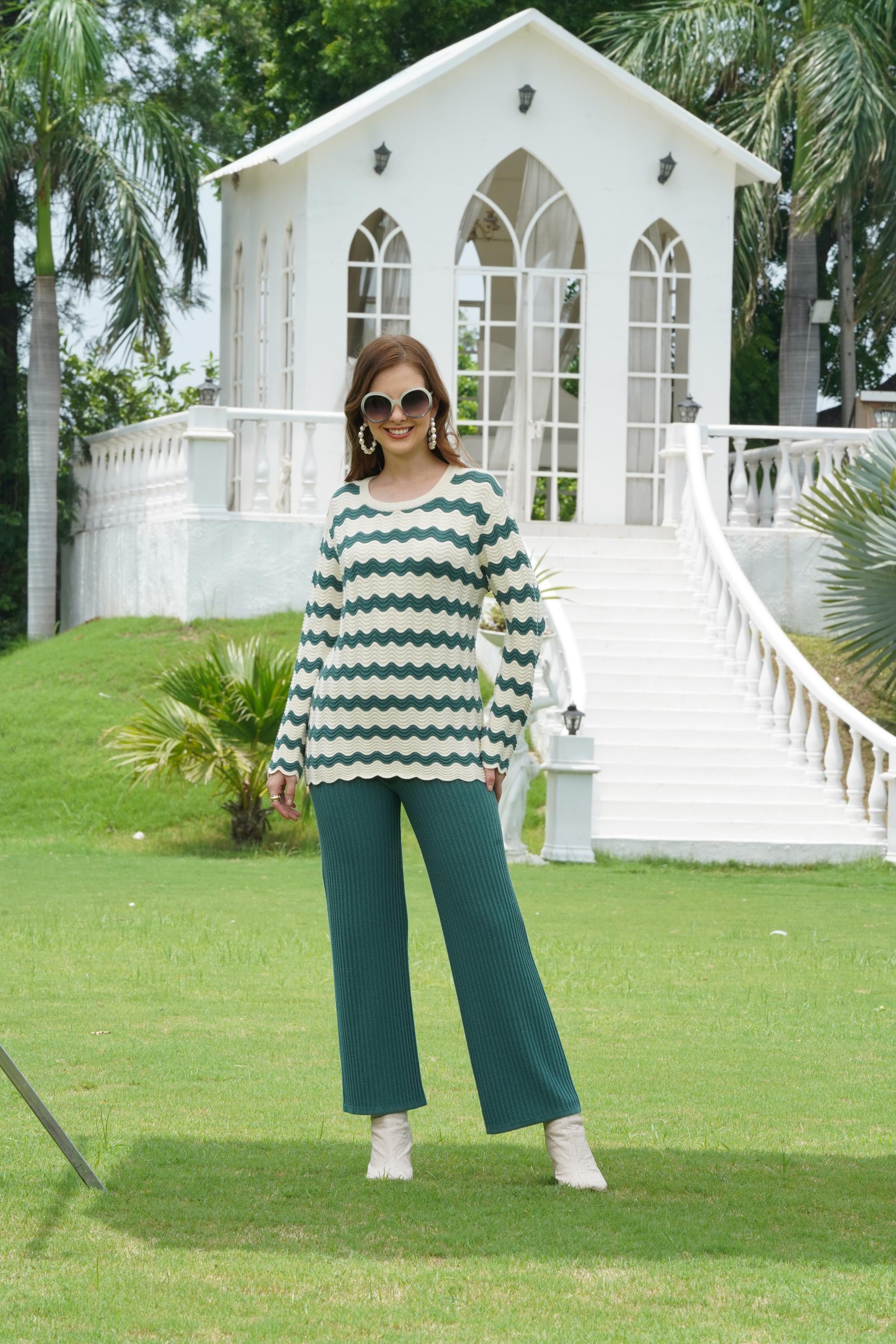 Add a stylish twist to your everyday wardrobe with this chic women’s knit two piece set, combining comfort and fashion in one. The set features a trendy striped sweater with a relaxed fit, paired with coordinating wide leg pants for a modern, effortless look. Crafted from soft and breathable knit fabric, this two piece outfit is perfect for casual wear, lounging, or stepping out in style. The timeless stripes add a touch of sophistication, making this knit lounge set versatile for multiple occasions. Whether you’re at home, running errands, or enjoying a day out, this casual knitwear set delivers both comfort and elegance. Designed with attention to detail, it’s a must-have fall winter outfit that transitions easily from season to season. Pair it with boots, sneakers, or heels to create your perfect look—this set ensures you always stay chic and cozy.